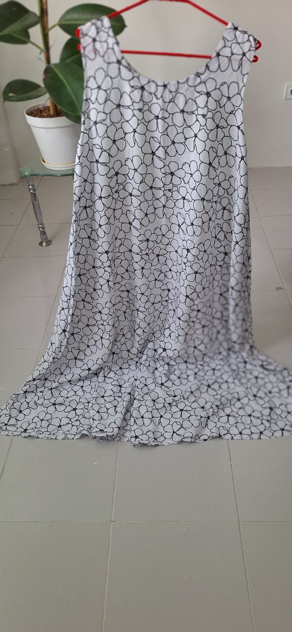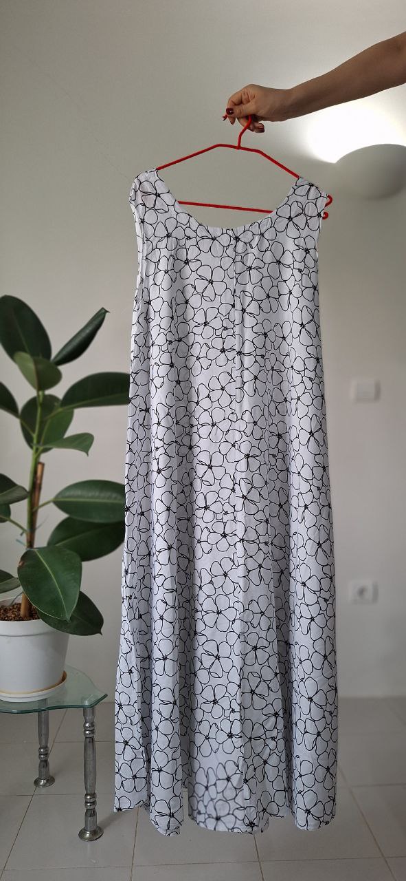 پیرهن طرحدار بلند – سفید و مشکی، جنس نخی، فریسایز